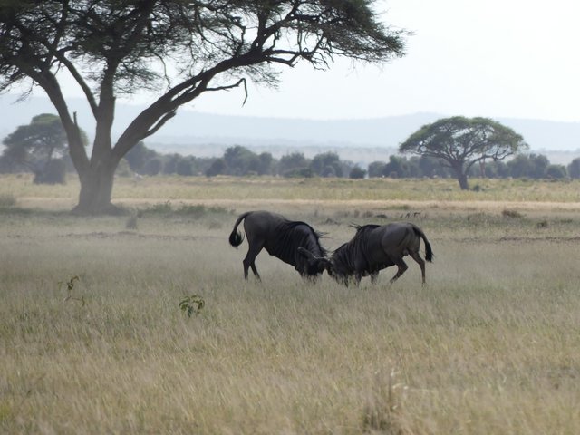 Auch auf der Strecke zum Tsavo West war der Kili stets präsent und wir genossen die Fahrt auf guter Piste. Vor ca. 17 Jahren waren wir schon einmal in Kenia und damals konnte diese Strecke nur in bewaffneter Begleitung gefahren werden. Hier hat sich in den letzten Jahren zum Glück einiges getan und Kenia hat in fast allen Regionen die „Banditen“ vertreiben können. Zwischen Tsavo West und Tsavo Ost dann der Schreck. Beim Mittagessen in einem Imbiss lief der Fernseher und durch Zufall sahen wir die Nachricht: „Bürger flüchten vor Lockdown aus Nairobi“. Die Zahlen hatten wir eigentlich immer im Auge gehabt und sie nicht als erschreckend hoch eingestuft, aber in Hinblick auf die bevorstehenden Osterfeiertage und damit verbundenen Familienbesuche beschloss der Präsident, Nairobi und 4 angrenzende Gebiete bis auf weiteres in den Lockdown zu setzen. Der Weg nach Nairobi und an der Grenze entlang zur Masai Mara war für uns nun abgeschnitten, aber zum Glück waren wir in Voi. Ein Tag vor der Schließung waren wir noch in dem betroffenen Gebiet. Ändern konnten wir nun eh nichts mehr, also genossen wir erst einmal die roten Elefanten im Tsavo East.
